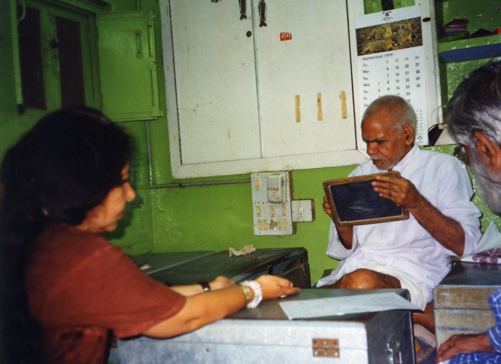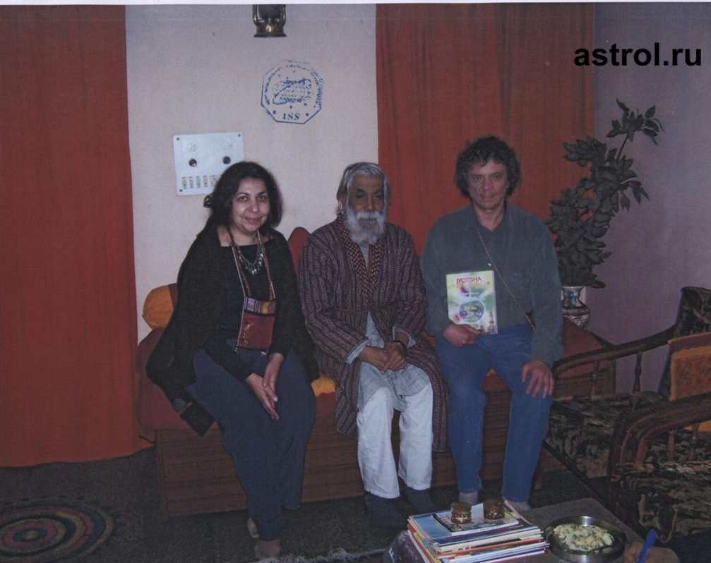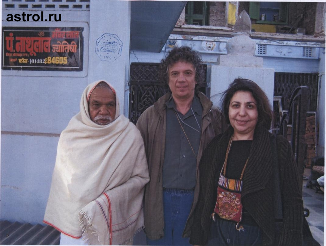 Борис Бойко и Каринэ Диланян в гостях у Бхригу-шастри пандита Натху Лала, того, кто читает по пальмовым листьям. Это был второй визит к Бхригу-шастри.