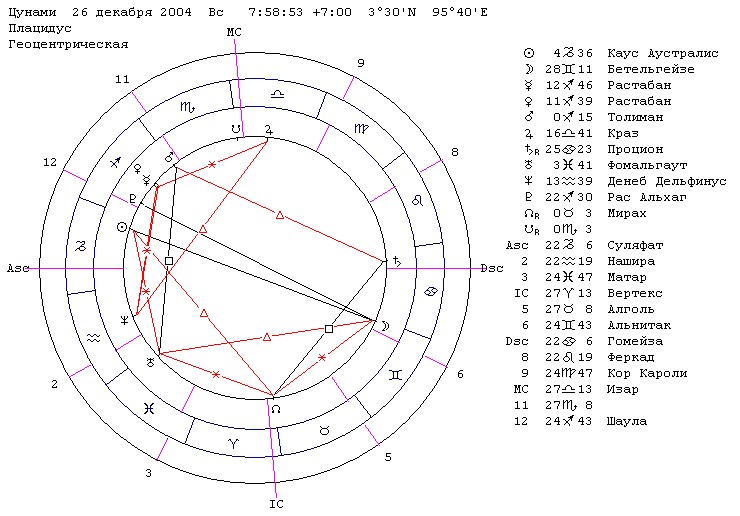 В карте солнечной революции, построенной на эпицентр цунами, произошедшего в результате землетрясения, восходит Рак с Сатурном.